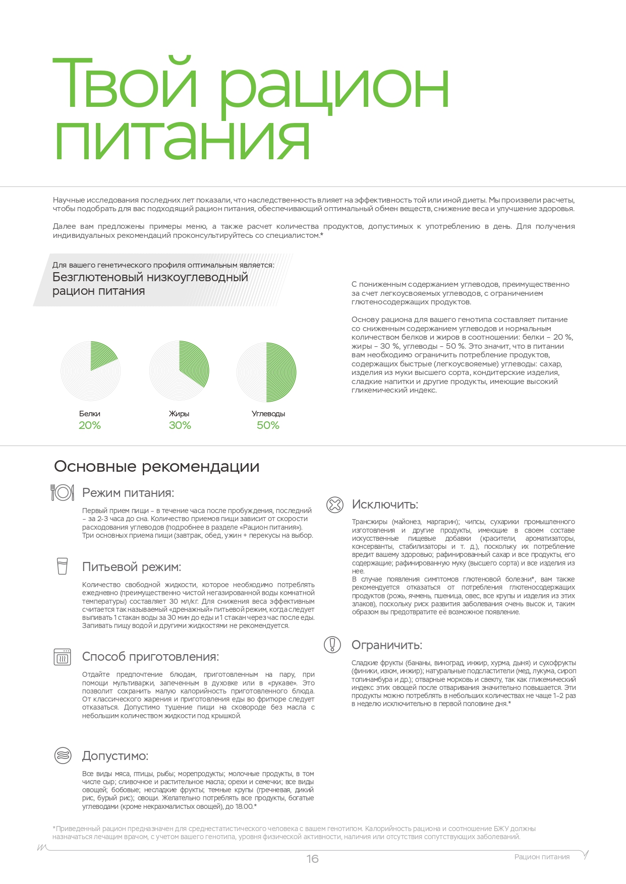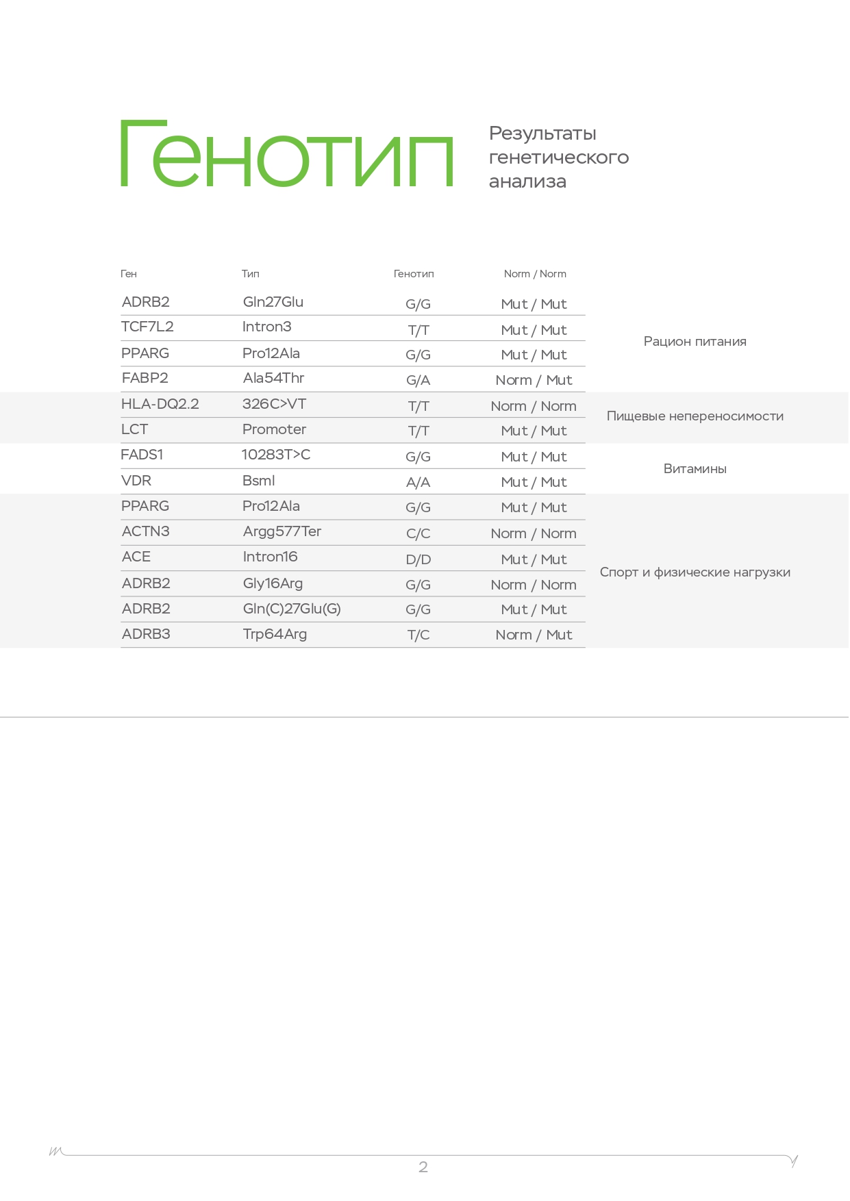 Помните, что помимо физических нагрузок, большую роль играет питание. Вы также можете пройти ДНК-тест на диету, который покажет, каких веществ не хватает в организме, какие организм усваивает лучше, а какие хуже и многое другое.